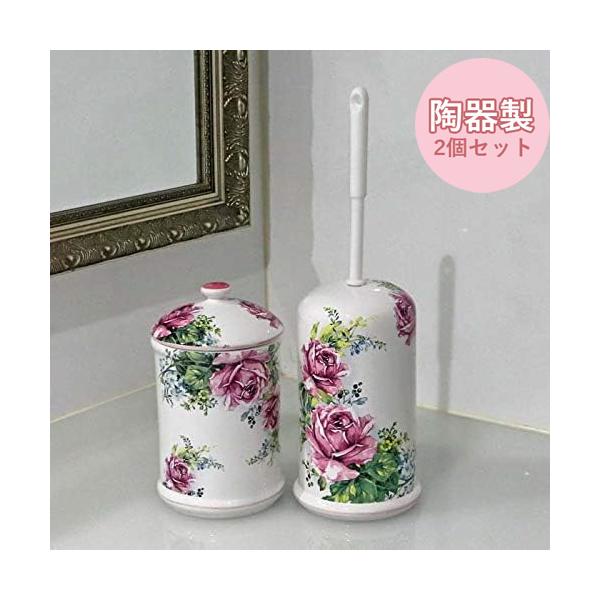 Amazon セットで買うと 陶器のトイレブラシ ポットセット リトルローズ トイレブラシ おしゃれ トイレブラシホルダー 陶器 トイレ お掃除 トイレ 用品 トイレブラシ ホーム キッチン オンライン通販